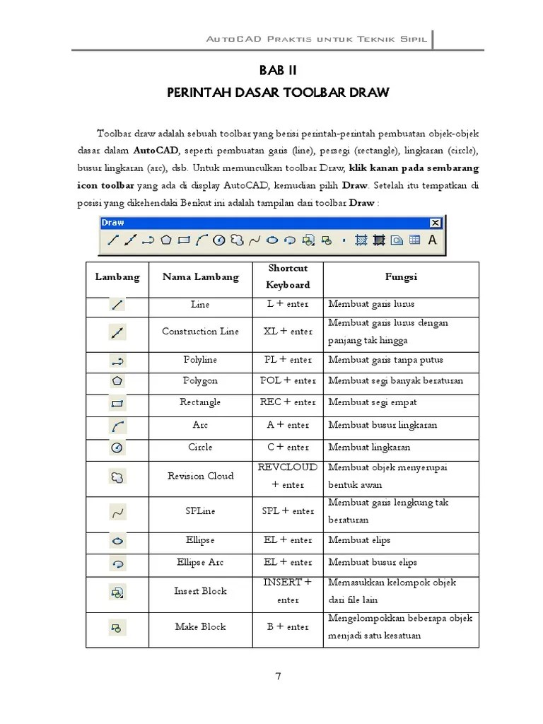 Perintah umum autocad action command shortcut arti draw line l garis polyline pl garis sambung spline spl garis sambung tak beraturan rectang rec bujur . Dibawah ini merupakan tool bar yang ada pada lembar kerja autocad, saya sebutkan tool tersebut beserta fungsinya. Fasilitas tombol fungsi pada auto cad antara lain : Gambar 3.5 hasil pemotongan objek dengan input perintah tool trim. Menampilkan help atas perintah yang sedang berjalan. Berisikan pembahasan mengenai program autocad 2018 dengan. Gambar, beserta kop gambar nya. Perintah dasar autocad dan fungsinya. Garis merupakan objek dasar dari autocad. Panel draw dapat diperbesar dengan menekan title bar pada panel draw. Kelemahan menggambar teknik secara manual dapat teratasi. Perintah untuk mendapatkan sebuah titik yang tegak lurus terhadap sebuah objek. Untuk menggambar polygon atau segi banyak.